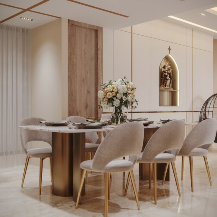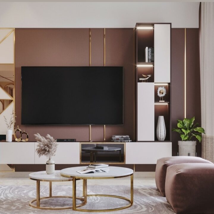 This living room uses selected accent pieces, feature walls, and statement lighting to add sophistication and character. Neutral base colours allow the decor elements to stand out, creating a balanced look that feels both refined and contemporary.
