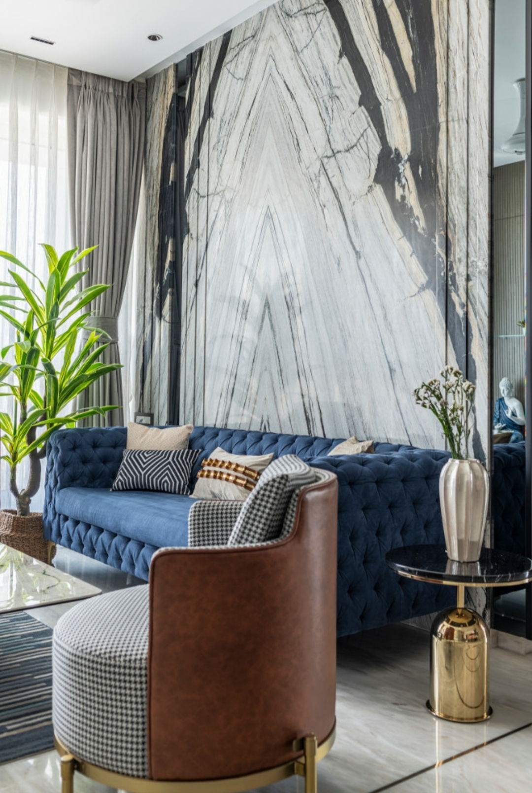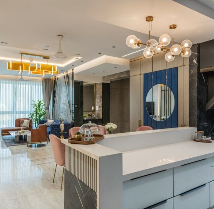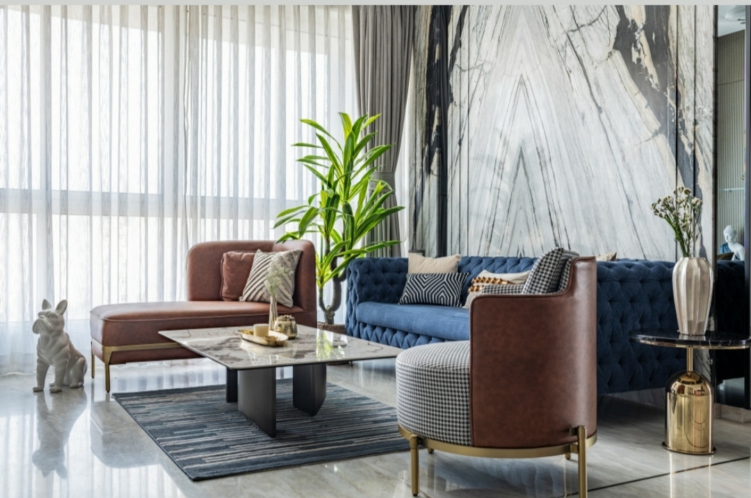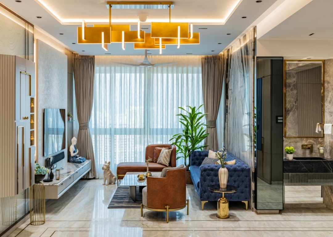 This living space is planned with a modern aesthetic, featuring clean-lined furniture, neutral tones, and well-balanced accents. The layout encourages easy circulation and conversation, making it perfect for both daily living and entertaining guests.