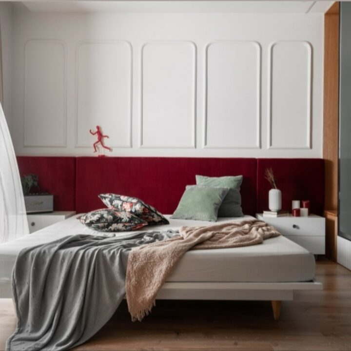 Designed for city living, this bedroom blends modern materials with a practical layout that supports everyday use. Thoughtful placement of the bed, wardrobe, and study or dresser area ensures ease of movement and a visually harmonious composition.