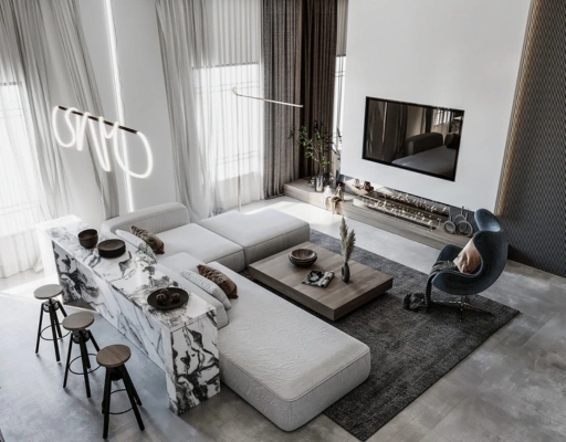 Contemporary Living Space with Layered Lighting